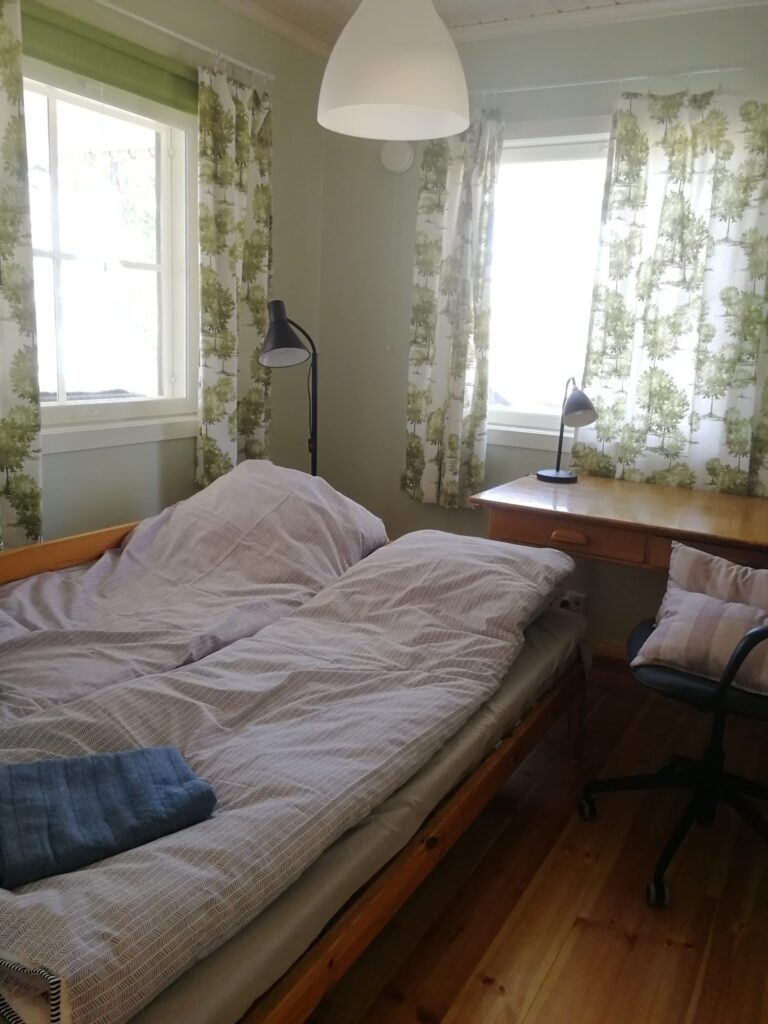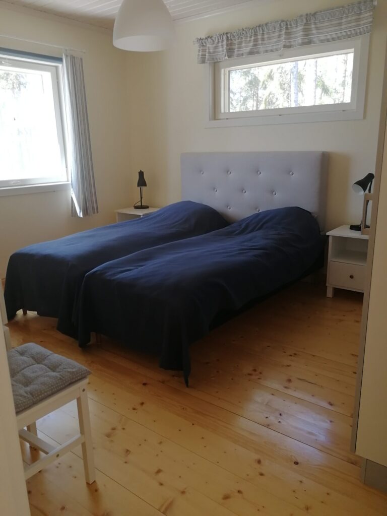 Saaristohuvilassa on kaksi kahden hengen makuuhuonetta, toimisto jossa vuodesohva (2 henk.), lisäksi kahden hengen parvivuode. Mökissä on suuri avokeittiö-olohuone jossa TV ja takka. Kylpyhuoneessa WC, suihku, sähkölämmitteinen sauna sekä pesukone. Lisäksi rantasauna.