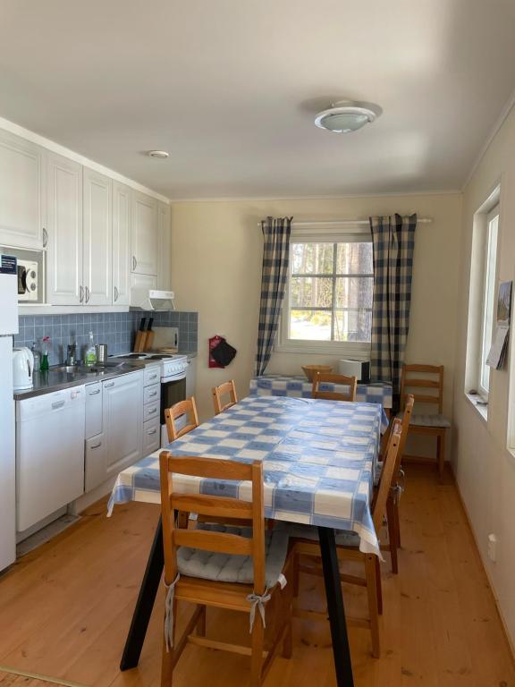 Kökets utrustning: kylskåp, spis, ugn, mikrovågsugn, brödrost, kaffekokare, diskmaskin. Därtill kupolgrill.